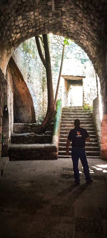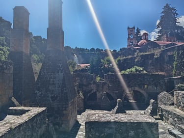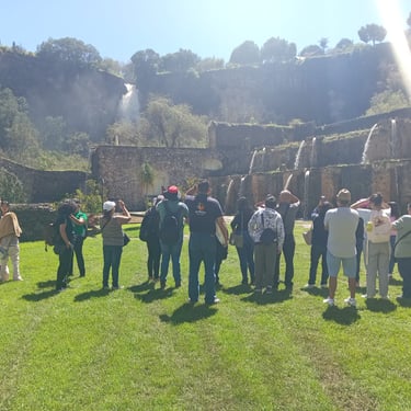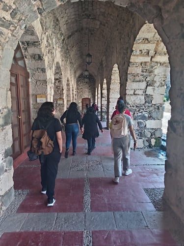 Más tarde, exploramos la majestuosa Hacienda Santa María Regla, un escenario impresionante entre túneles, arcos y muros de piedra que narran el legado minero de la región. Cada pasillo y cada rincón nos transportaron a otra época, revelando la riqueza histórica y el espíritu de los antiguos trabajadores de las minas.
